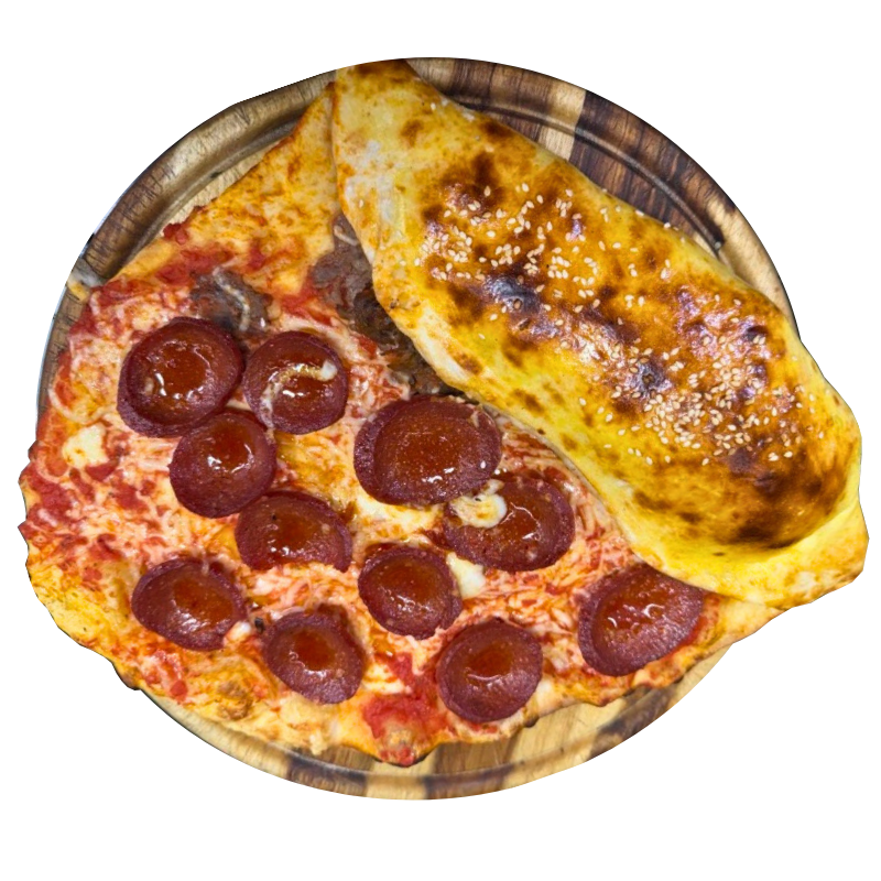 Frisch im Steinofen gebacken vereint unsere Spezial Pide das Beste aus zwei Welten. Eine Hälfte als gefüllte Tasche mit saftigem Dönerfleisch und geschmolzenem Käse. Die andere Hälfte klassisch offen gebacken, belegt mit würziger Sucuk und feinem Käse.
